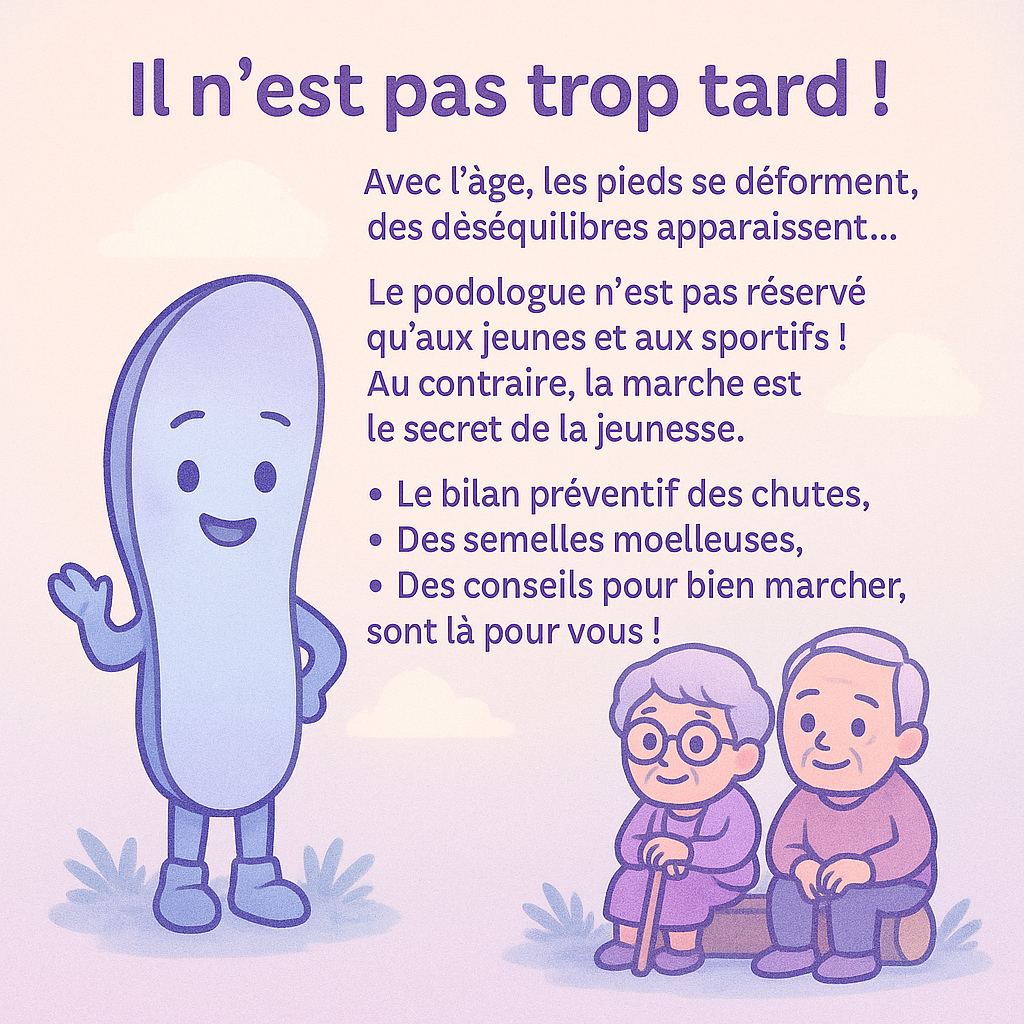 La marche est le secret de la jeunesse. Et notre mission, en tant que podologues, est de vous aider à la garder vivante, confortable et sécurisée, à chaque étape de votre vie.